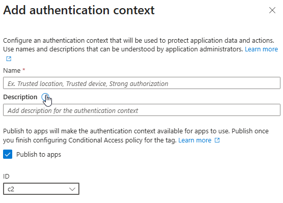 Give your new context a name, description, and select an ID from the drop down. You can have up to 99 Authentication contexts in your tenant before you run out of those Identifiers.