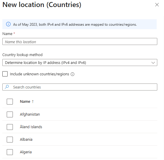 The next step is to add a named location. This is going to be the countries from which users should not be able to access your SPO site. Nothing complicated here, right?