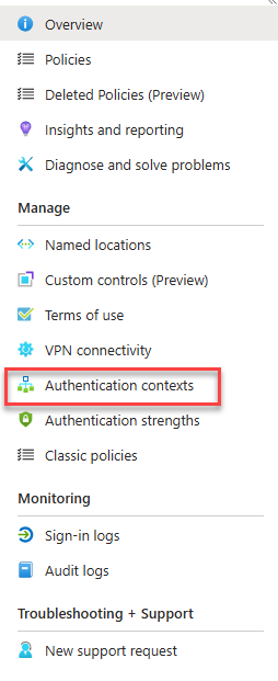 Navigate to Authentication contexts in the Entra CA portal and click to create a new one.